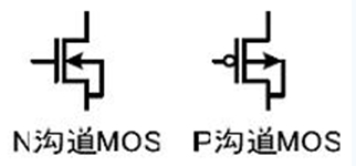 MOSFET管是FET的一種(另一種是JFET),可以被制造成增強型或耗盡型,P溝道或N溝道共4種類型,但實際應用的只有增強型的N溝道MOS管和增強型的P溝道MOS管,所以通常提到NMOS,或者PMOS指的就是這兩種。右圖是這兩種MOS管的符號。