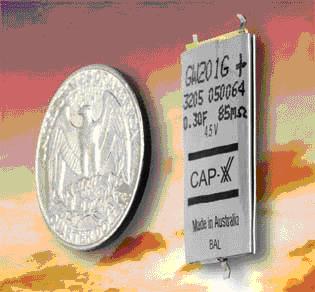 CAP-XX公司專門針對便攜式市場推出了GS/GW系列單節(jié)和雙節(jié)超級電容器(圖5)。這些電容提供了電能有限的電池的替代品,壽命非常長,單節(jié)配置電壓為2.3V,串聯(lián)連接的雙節(jié)電容器電壓可達4.5V。