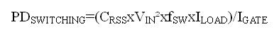 其中CRSS是MOSFET的反向傳輸電容(數(shù)據(jù)資料中的一個參數(shù)),fSW為開關(guān)頻率,IGATE是MOSFET的柵極驅(qū)動器在MOSFET處于臨界導(dǎo)通(VGS位于柵極充電曲線的平坦區(qū)域)時的吸收/源出電流。