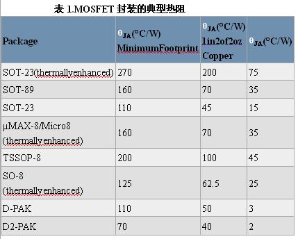 注:同樣封裝類型的不同器件,以及不同制造商出品的相似封裝的熱阻各不相同,和封裝的機械特性、管芯尺寸和安裝及綁定方法有關(guān)。需仔細(xì)考慮MOSFET數(shù)據(jù)資料中的熱信息。