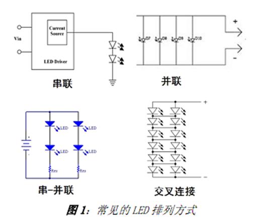 當然,用戶也可以采用并聯、串聯-并聯組合及交叉連接等其它排列方式,用于需要“相互匹配的”LED 正向電壓的應用,并獲得其它優勢。如在交叉連接中,如果其中某個LED 因故障開路,電路中僅有1 個LED 的驅動電流會加倍,從而盡量減少對整個電路的影響。