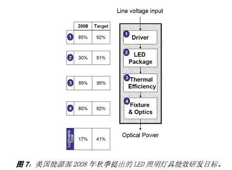 LED 驅動器本身也在不斷演進, 著重于進一步提高能效、 增加功能及功率密度。 美國“能源之星”的固態照明規范提出的是照明器具級的能效限制,涉及包括功率因數在內的特定產品要求。而歐盟的IEC 61347-2-13 (5/2006)標準針對采用直流或交流供電的LED模塊的要求包括: