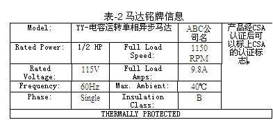 例如,某廠家生產(chǎn)空氣壓縮機(jī),銷售市場在北美(加拿大與美國),申請CSA產(chǎn)品安全認(rèn)證以符合北美標(biāo)準(zhǔn)。這類產(chǎn)品適用的標(biāo)準(zhǔn)是CAN/CSA-C22.2 NO.68. 其中空壓機(jī)使用的馬達(dá)銘牌信息摘錄如下: