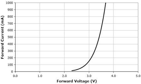 圖1. XLampXP-G的輸出相對光強(qiáng)和正向電流的關(guān)系