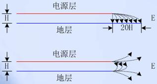 2.電源平面應相對于其相鄰地平面內縮(建議值5H~20H)。電源平面相對于其回流地平面內縮可以有效抑制“邊緣輻射”問題,如圖2所示。