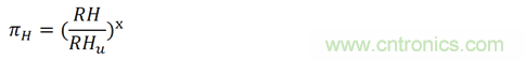公式中,αf為測試的加速因子,也就是加速(后綴為a)測試條件下MTTF(Mean Time To Failures,平均無故障時間)與參考(后綴為u)測試條件下MTTF之比。EA是活化能,在0.79eV和0.95eV之間,k為玻爾茲曼常數。指數x為相對濕度的影響,指數y為電壓的影響,都是經驗數據,但是必須通過實際評估來確認。我們把此加速模型擴展到壽命預估模型中。