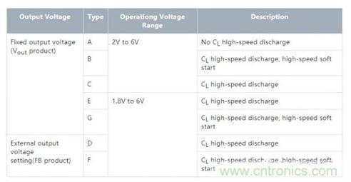 表1: XC9235/XC9236/XC9237的選擇表