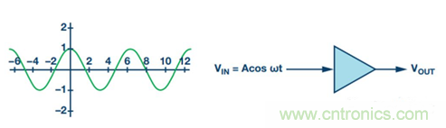 差分信號(hào)可抑制偶數(shù)階諧波。以下展示了連續(xù)波(CW)通過(guò)一個(gè) 增益模塊的示例。當(dāng)使用一個(gè)單端放大器時(shí),如圖2所示,輸出 可表示為公式1和公式2。