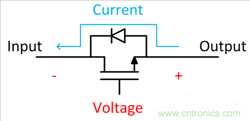 反向電流的最常見原因,即反向偏置電壓,就是輸出上的電壓要高于輸入上的電壓,從而使電流在系統中的流動方向與你希望的流動方向相反。圖1中顯示了這個情況。