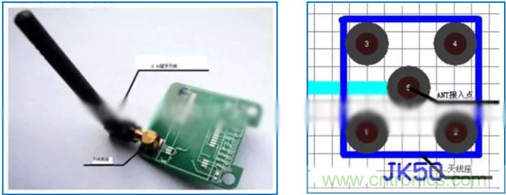 2.4G棒狀藍牙天線體積大,但傳輸距離要強于其他天線。在PCB設(shè)計時,天線周圍也和上述的三種天線設(shè)計一樣要凈空。如下圖:
