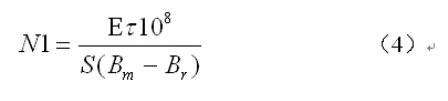 (4)式就是計算反激式開關電源變壓器初級線圈N1繞組匝數的公式。式中,N1為變壓器初級線圈N1繞組的最少匝數,S為變壓器鐵心的導磁面積,單位:平方厘米;Bm為變壓器鐵心的最大磁感應強度,單位:高斯;Br為變壓器鐵心的剩余磁感應強度,單位:高斯),Br一般簡稱剩磁;τ = Ton,為控制開關的接通時間,簡稱脈沖寬度,或電源開關管導通時間的寬度,單位:秒;E為工作電壓,單位為伏。式中的指數是統一單位用的,選用不同單位制,指數的值也不一樣,這里選用CGS單位制,即:長度為厘米(cm),磁感應強度為高斯(Gs),磁通單位為麥克斯韋(Mx)。