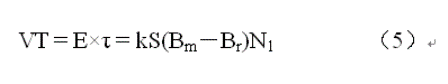 就是變壓器的伏秒容量,即:伏秒容量等于輸入脈沖電壓幅度與脈沖寬度的乘積,這里我們把伏秒容量用VT來表示。伏秒容量VT表示:一個變壓器能夠承受多高的輸入電壓和多長時間的沖擊。