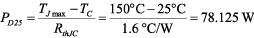 在與MOSFET SOA圖進行比較之前,我們需要考慮MOSFET的溫度降額,因為SOA是以室溫(TC = 25°C)下的數據為基礎的。首先計算TC = 25°C下的功耗: