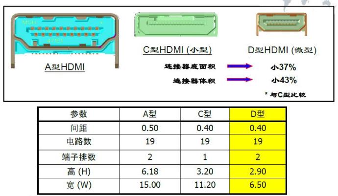 - TypeD(微型)連接器的尺寸C型HDMI連接器的一半