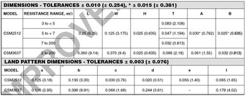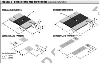 電流檢測電阻的生產廠家很多,同一生產廠家也會生產出幾種或幾十種不同的電流檢測電阻(如不同的電流測量范圍、不同的精度、不同的封裝等)。這里介紹VISHAY公司的高精電流檢測電阻CSM系列,它們是CSM2512及CSM3637及一些同類產品。