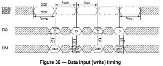 1.讀操作DQS跳變點與DQ跳變沿對齊,寫操作DQS跳變點對齊DQ中心。