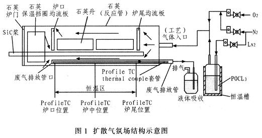 工藝反應(yīng)過程中SiC槳退出反應(yīng)石英管外,這些設(shè)計上的優(yōu)點減少擴散均勻性的影響因素,在工藝生產(chǎn)中能更好地保證擴散的均勻性;同時也極大地降低工藝粘污風險,為高效太陽電池產(chǎn)業(yè)應(yīng)用提供硬件保障。這也是SCL式擴散爐逐步取代懸臂裝載式擴散爐的原因所在。早期的工藝路線主要包括開管擴散與閉管擴散,鑒于對擴散均勻性要求的不斷提高和對高轉(zhuǎn)換效率電池大規(guī)模生產(chǎn)成本降低的要求,現(xiàn)基本采用閉管工藝路線。對懸臂管式擴散爐中影響擴散均勻性的氣氛場因素進行相關(guān)的研究,以達到優(yōu)化工藝參數(shù)、降低生產(chǎn)成本的目的。