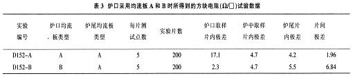 從表4可看出,廢氣排放口離恒溫區(qū)越遠,即離爐口越近,爐口的方阻片內(nèi)/片間均勻性改善越好,但廢氣排放的同時也有大量熱能的排放,在排放口區(qū)域聚集的熱能較多,因考慮到爐門的低溫(一般為小于200℃)要求,在一定程度上又限制了排放口到爐門的距離不能太近。所以,生產(chǎn)中廢氣排放口的較佳位置是在一個兩向平衡距離范圍內(nèi)。