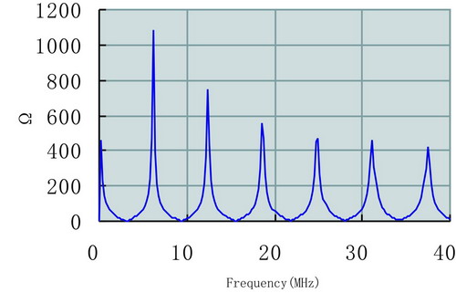 研究信道阻抗特性的目的主要是為了實現(xiàn)信道與發(fā)射機、接收機之間的阻抗匹配,當(dāng)阻抗失配時,將造成信號能量的浪費,甚至出現(xiàn)啞信號點。由于中壓配電網(wǎng)的分支多,負載情況復(fù)雜,線路阻抗會隨距離、頻率、時間而變化,且變化范圍大,一般在幾十歐~幾百歐之間,圖2即為中壓電力線阻抗特性隨頻率變化曲線。故在實現(xiàn)寬帶網(wǎng)絡(luò)接入時,阻抗匹配比較困難;目前,通常采用在耦合技術(shù)中通過犧牲匹配性能來適合線路側(cè)寬范圍內(nèi)阻抗的方法,也有系統(tǒng)在發(fā)射機端采用阻抗自適應(yīng)的功率放大設(shè)備等,以達到較好的阻抗匹配效果。