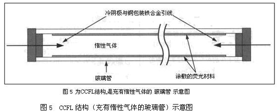 冷陰極熒光燈(CCFL)是一種長(zhǎng)而細(xì)的密封玻璃管,內(nèi)充惰性氣體(圖5)。
