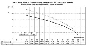 額定電流,是促使母端子特定升溫的電流量,一般為20℃或30℃。要正確使用這數(shù)據(jù),除了須了解其測試方法,也須留意其測試環(huán)境。例如:有些單純測試一對相接卻沒有安裝在外殼內的母端子及公針。眾所周知,影響連接器的升溫的因素,包括接觸電阻、電流量及散熱渠道。在實際應用時,公針母端子是安裝在外殼內的。因此,散熱渠道劇減。再加上一般同時使用多個接觸對,更不能以額定電流峰值設置為連接器的工作電流。