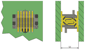 這其中典型的合成連接器例子有:M型歐式連接器、2mmHM的M型連接器以及D-Sub連接器。舉個例子,ERmet2mmM型彎角母連接器提供55針(5排x11行針),并備有三個特殊針腔供放置電源端子或同軸端子。這類連接器可以被單獨使用,也可以與2mm其他類型如A、B、C、L或N型組合。相對的,ERmetM型垂直公連接器有多達77針(7排x11行針),其中兩行外排(22針)將與母連接器的屏蔽板連接。相應的,公連接器也有三個特殊針腔供放置電源端子或同軸端子。單純的電源模塊例子包括2mmHM電源模塊、MicroSpeed電源模塊以及ATCA電源連接器。除此之外,還有板到線的電源連接——MiniBridge及MaxiBridge。