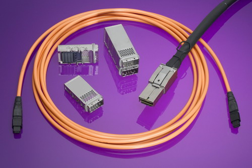有源光纜組件:CXP 有源光纜(AOC)組件和可插拔收發器模塊采用了12個發射(TX) 和 12 個接收 (RX)通道,在多模光纖上提供每通道10 Gbps的數據速率,傳輸距離長達1km (3280.840’)。光纜終端的光電轉換由包含了專門針對低功耗和高可靠性而優化的光引擎的集成式收發器模塊來完成。