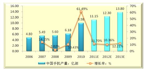 2006-2013年中國手機(jī)產(chǎn)量及未來發(fā)展趨勢(shì)