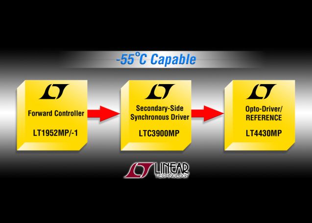 凌力爾特公司 (Linear Technology Corporation) 推出 LT1952/-1、LTC3900 和 LT4430 的高可靠性 (MP 級(jí)) 版本。這些器件合起來(lái)構(gòu)成一個(gè)高效率 (高達(dá) 95%) 同步整流隔離式正向轉(zhuǎn)換器,該轉(zhuǎn)換器規(guī)定在 -55°C 至 125°C 的節(jié)溫范圍內(nèi)工作,并在這個(gè)溫度范圍內(nèi)進(jìn)行了生產(chǎn)測(cè)試。LT1952/-1 是一款具有源變壓器復(fù)位功能的單開(kāi)關(guān)正激式控制器,可向副端的 LTC3900 同步整流驅(qū)動(dòng)器提供定時(shí)信號(hào)。LT4430 是一個(gè)具精準(zhǔn)基準(zhǔn)電壓的副端光驅(qū)動(dòng)器,構(gòu)成了嚴(yán)格調(diào)節(jié)的隔離型正激式轉(zhuǎn)換器電路。LTC3900 和 LT4430 的最高工作節(jié)溫規(guī)定為 150°C。這種類型的正向轉(zhuǎn)換器設(shè)計(jì)非常適用于 12V、24V 和 48V 標(biāo)稱輸入電壓,這類輸入電壓常見(jiàn)于電信、數(shù)據(jù)通信、工業(yè)和軍事 / 航天應(yīng)用。