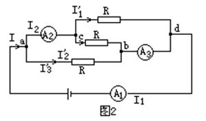 不計電流表內(nèi)電阻時,三個電阻并聯(lián).設(shè)總電流為I,則通過每個電阻的電流