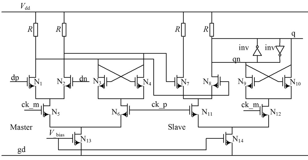 圖2 CML 鎖存器構成的主從式觸發器電路