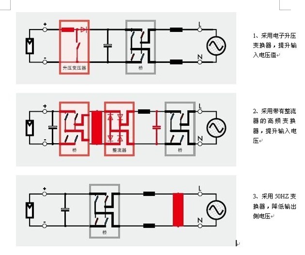 與標準逆變器的基本設計不同,直接并網(wǎng)逆變器有很多方法來調(diào)整或提升輸入電壓范圍。常用的逆變器技術(shù)方案與結(jié)構(gòu)都各不相同: