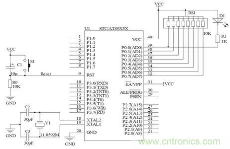 由軟件清0關閉定時器1。當GATE = 1,且INT1為高電平時,TR1置1啟動定時器1;當GATE = 0時,TR1置1時即可啟動定時器1.