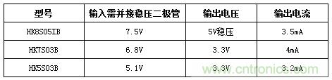 一般情況下,HK模塊輸入端并接的二極管穩(wěn)壓值越高,HK能夠提供的輸出功率越大。為最大限度地延長兩線制信號的傳輸距離,在滿足MCU所需功耗的前提下,盡量選擇穩(wěn)壓值低一些的穩(wěn)壓二極管,作為HK模塊的輸入電壓。對于列表中沒有的輸入電壓,可以向廣州金升陽科技有限公司訂制。