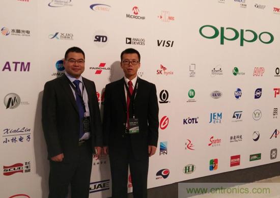 廣東歐珀資源開(kāi)發(fā)部部長(zhǎng)劉波先生 (左) 與 Fairchild 大中華地區(qū)副總裁賴長(zhǎng)青先生 (右) 在頒獎(jiǎng)禮上合照