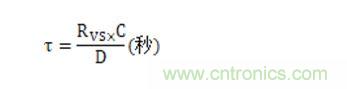 如上圖所示,在自舉驅(qū)動芯片VS端與Q1的源極之間增加一個電阻Rvs,該電阻不僅是自舉限流電阻,同時還是導通電阻和關(guān)斷電阻。由于占空比受自舉電容影響,該電阻值一般不能取得較大,推薦值為3~10Ω較為適宜。電阻和自舉電容的容值與其充電時間可以由以下公式得出:
