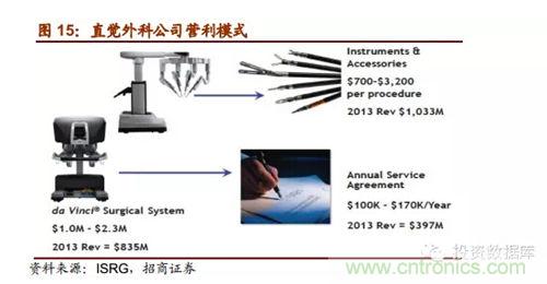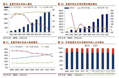 直覺(jué)外科公司是全球領(lǐng)先的微創(chuàng)機(jī)器人輔助手術(shù)機(jī)器人公司,2013年?duì)I收達(dá)22.65億美元,截止2014年第一季度達(dá)芬奇機(jī)器人累計(jì)銷售數(shù)量為3039臺(tái),2014年8月總市值達(dá)159.60億美元。