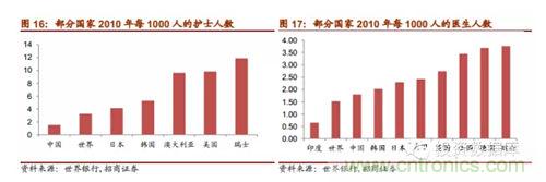 我國(guó)是一個(gè)發(fā)展中的人口大國(guó),醫(yī)生和護(hù)士人數(shù)相對(duì)于人口基數(shù)十分缺乏,根據(jù)世界銀行2014年公布的數(shù)據(jù),我國(guó)每千人的護(hù)士?jī)H為世界人均量的0.46,占日本的0.4,占美國(guó)的0.15;我國(guó)每千人的醫(yī)生人數(shù)僅為日本的0.79,僅為德國(guó)的一半。因而醫(yī)護(hù)人員的不足引起的供需矛盾使得醫(yī)用機(jī)器人的發(fā)展具有更多的動(dòng)力。