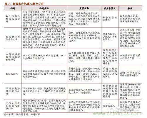 隨著醫(yī)用機(jī)器人技術(shù)的不斷突破和發(fā)展,從2005年開(kāi)始我國(guó)有一批重點(diǎn)高校科研醫(yī)院?jiǎn)挝患把芯克谘芯酷t(yī)用機(jī)器人系統(tǒng)并取得了一些小成就,比如哈工大的微創(chuàng)腹腔外科手術(shù)機(jī)器已經(jīng)成功被專家驗(yàn)收,天津大學(xué)的妙手機(jī)器人在今年3月份開(kāi)始臨床使用;同時(shí),隨著醫(yī)用機(jī)器人商業(yè)化市場(chǎng)化的可能性愈發(fā)明晰,已經(jīng)有部分企業(yè)正在生產(chǎn)或者打算進(jìn)軍醫(yī)用機(jī)器人細(xì)分行業(yè),其中就包括機(jī)器人領(lǐng)先企業(yè)的博實(shí)股份和新松機(jī)器人。