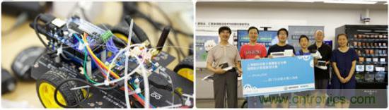 大賽的另一個關注點來自一支名叫“老少爺們兒”的參賽隊伍,之所以叫這個名字是因為該隊除了有年紀較大的中年人,還有本次大賽年紀最小的選手。這只隊伍的參賽項目是“神經(jīng)元探索車”,他們采用Genuino 101(神經(jīng)元)模塊,通過Wi-Fi來控制帶視屏和抓手的小車,實現(xiàn)遠程取物排障。小選手現(xiàn)場非常積極、投入,與年齡比自己大很多的隊友團結協(xié)作,親自動手制作,最終,他們獲得西門子創(chuàng)客大賽入場券。