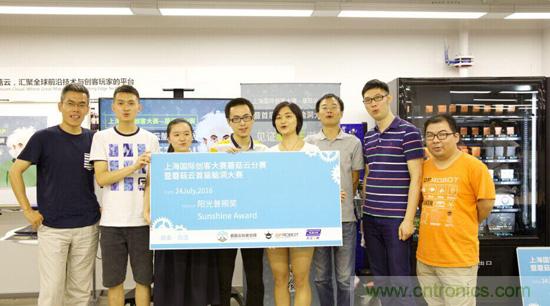 云漢芯城社區(qū)運營總監(jiān)顧天任(右二)為參賽隊伍頒發(fā)陽光普照獎