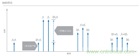 為了理解IMD,我們需要回顧一下非線性系統(tǒng)的多音信號理論。雖然單音激勵信號會在該信號頻率的每個倍數(shù)處產生諧波行為,但是多音信號產生的非線性產物需要在更寬的頻率范圍才會出現(xiàn)。