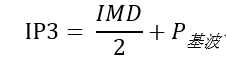實際上,IP3/TOI是計算所得而非測量所得的結果。一階產物和三階產物之間的功率增加比是3:1,利用以下公式可以計算出IP3。