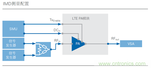 圖7: IMD測量需要連接至功率組合器的兩個信號產生器