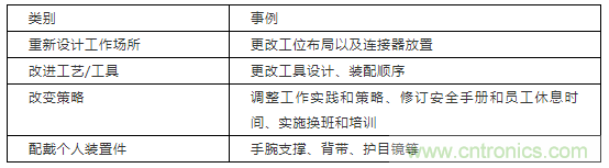 檢驗每項任務(wù)及其相關(guān)風(fēng)險,并確定重新設(shè)計工作場所、改進(jìn)工藝/工具、更改策略以及配戴個人防護(hù)裝備等潛在補(bǔ)救措施。