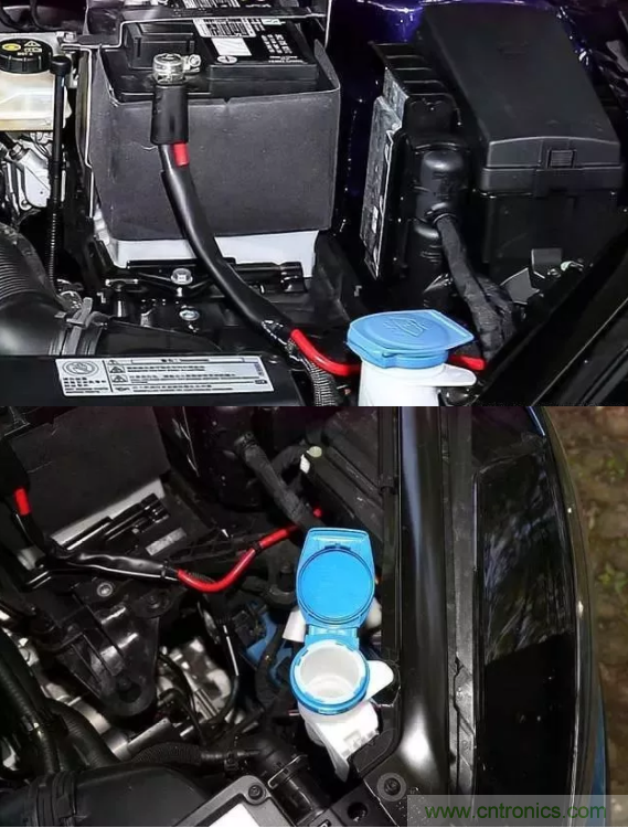 但這不是我們關注的重點。高爾夫的蓄電池布置在整車左側靠近駕駛室的地方,機艙電器盒緊挨著蓄電池進行布置。這種布置方式,對于降低線束重量和線束成本非常有利。可以極大的縮短蓄電池到機艙保險盒,機艙保險盒到駕駛室保險盒的粗導線的長度。