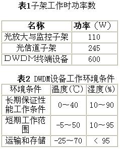 32X2.5GDWDM終端由一個光放大與監(jiān)控子架和兩個光信道子架組成。光放大及監(jiān)控子架和光信道子架采用靠背椅結構,子架的光、電信號均采用前出線,高度為11U。3U電源子架提供-48V電源,機架采用21″標準機架。子架工作時的功率參數和環(huán)境條件見表1與表2。