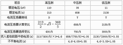 主變差動保護部分整定值如下(計算過程略):