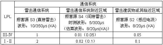 表3 通信系統(tǒng)雷電流浪涌的預計值
