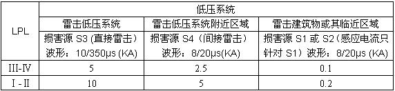 當直擊雷擊中實體和線路(低壓系統(tǒng)、通信線路)都應選用Iimp(10/350μS)測試的SPD,例如LPS中的雷電等電位連接的SPD和在LPZ0A區(qū)的架空線路使用的SPD。